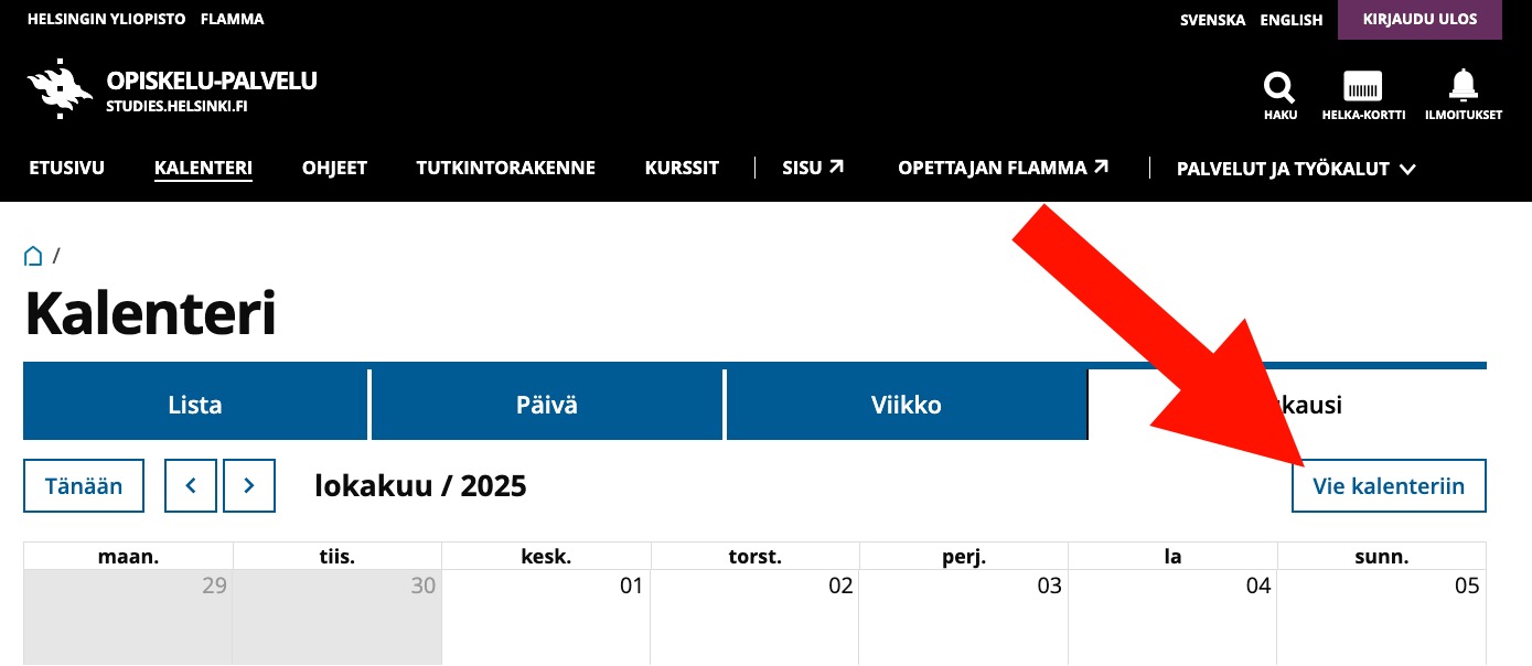 - Avaa Opiskelu-palvelun kalenteri osoitteesta https://studies.helsinki.fi/kalenteri