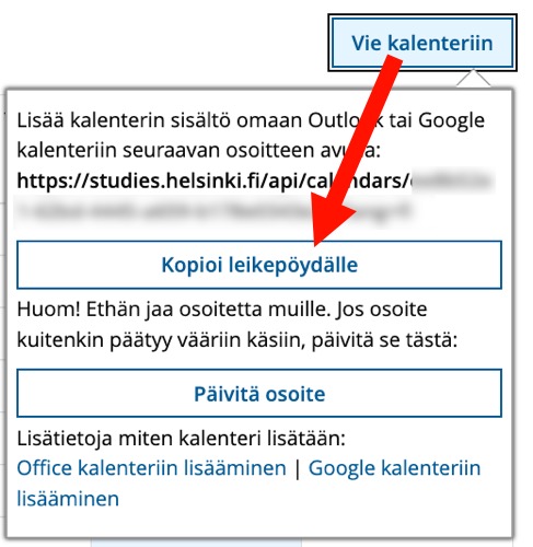 Kalenterilinkin kopioiminen Opiskelu-palvelun kalenterista