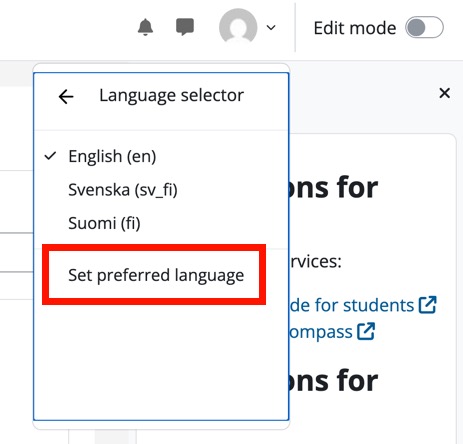 - Valitse avautuvasta valikosta Haluttu kieli (Set preferred language).